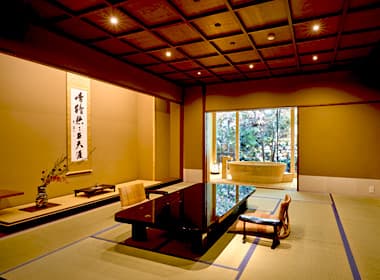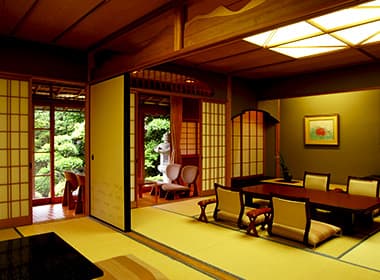 客房融合了传统日式风情,由一间十帖和一间六帖的房间相连,宽敞舒适。窗子正对着日式庭院,让您尽情感受四季的变换。客房可容纳多达6人,非常适合家庭或团队客人入住,深受宾客喜爱。在静谧的木制氛围中,体会悠闲的慢时光。